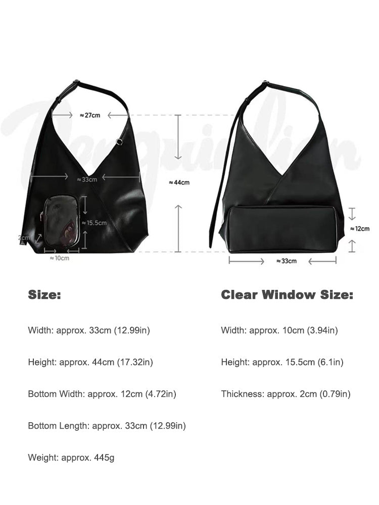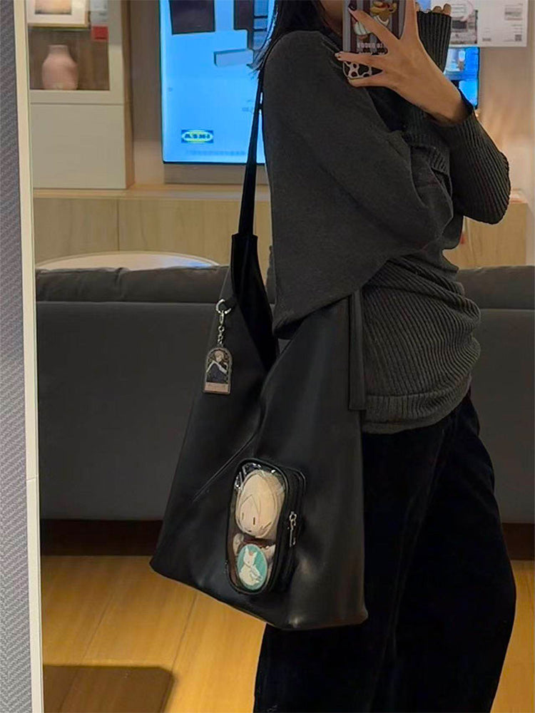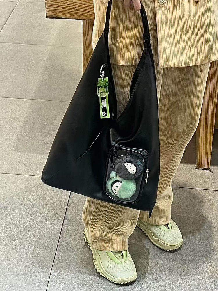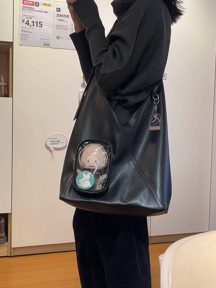 A sleek minimalist triangle ita bag designed for daily commuting, school, or work. Spacious enough to fit an 11-inch iPad, with a clear display pocket that can hold plush dolls up to 15cm (5.9in). Lightweight yet practical for everyday carry.